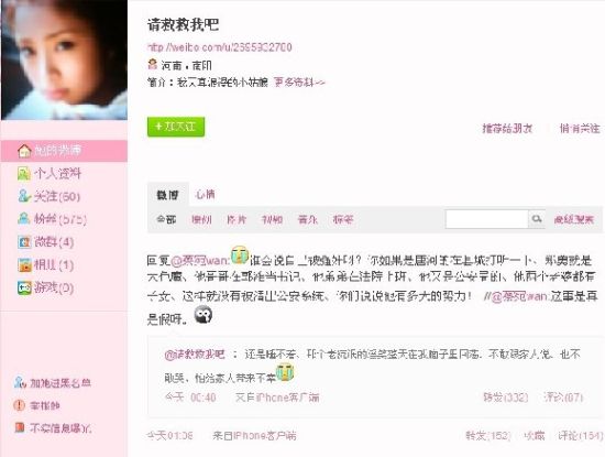 “西门晓强”:一个用苹果手机客户端发微博的小女孩说自己被侮辱,家是县城的,感觉很可疑。