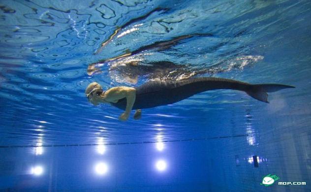 截肢女子安装“美人鱼尾巴” 变身“美人鱼”