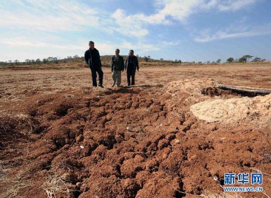从2009年开始,云南省楚雄彝族自治州遭遇三年连旱,导致库塘蓄水严重不足。今年初,降雨持续偏少,随着气温不断升高,库塘蓄水持续下降,各地旱情加剧。截至2月9日,因旱受灾农作物面积达25.1万亩,因旱饮水困难人口达30.3万人,其中双柏县城缺水严重,楚雄市城区、大姚县城供水不足,部分农村地区已出现水源点干涸的现象。目前,各地正全力开展抗旱应急工作,采取修建应急供水管道、安排送水车辆等措施,优先保证群众生活用水。