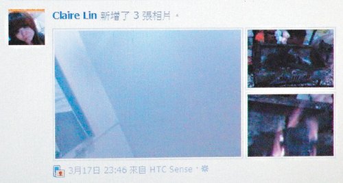 林美亨用手机上传三张她在房内烧炭自杀的照片。台湾《联合报》