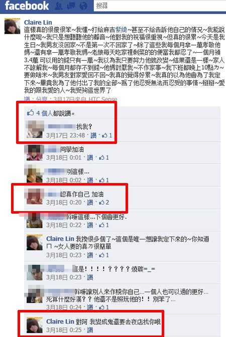 警方初步调查,当初在林女自杀过程中有和她联机对话的几名网友,昨天(27日)有人解释说彼此只是“脸书朋友”,多数不知她的真实身份,也有人说仅知道林女手机号码,却不知她住在哪里,她不再留言时,曾试图拨打手机和她联系,但已经无人接听。