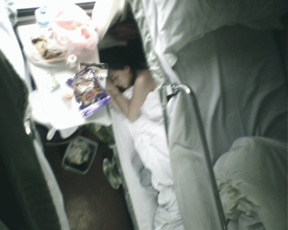 坐火车,卧铺,人很少,一个妹子戴着耳机唱歌,很难听。 我就叫了声:美女,别唱了,让我睡会儿行不? 这妹子看着我发了一下呆,回曰:行,那你上来吧。