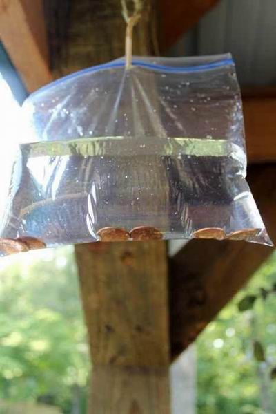 4.把袋子系好并将其挂在一个苍蝇经常出没的地方。