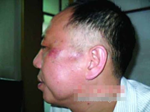 帖子还有一张廖曜中被打后的照片,照片上的拍摄日期显示为2011年10月10日。