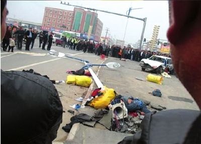 核心提示:2011年10月29日下午3点左右,河南省汝南县公安局梁祝镇派出所所长王银鹏酒后驾驶警车肇事,造成5人当场死亡、3人受伤。目前王银鹏因涉嫌以危险方法危害公共安全罪被当地公安机关逮捕。记者在采访此案时被派出所拘留,现场群众砸毁警车殡葬车。