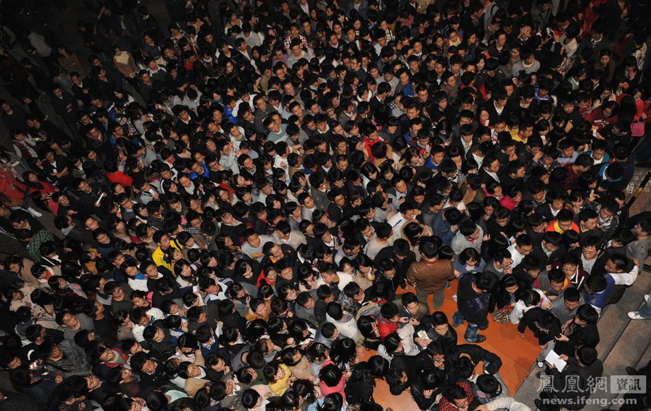 11月11日晚,合肥,中国科技大学西校园内,上万大学生参与合肥7所高校联合举办的“光棍节美丽邂逅”活动。图为活动现场,一票难求,“光棍们”在入场门前等候入场。