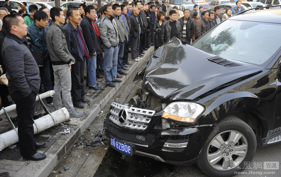 山西太原平阳路和王村南街交叉口,一辆黑色奔驰越野车因车速过快,撞上了路边的电线杆,将电线杆从根部撞断。整个电线杆倒在了路边,所幸没有造成人员伤亡。目睹事故发生的一位环卫工人介绍,当时车速太快,听到撞击声后就看见车子喷出火花,随后还冒了黑烟。