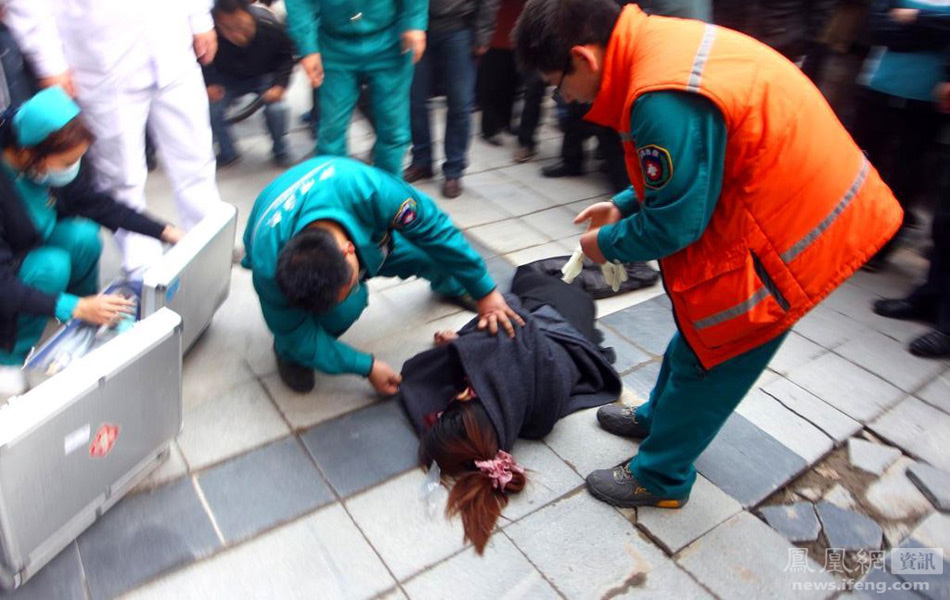 11日16时10分许,郑州市郑汴路与中州大道交叉处向东约400米路北的一幢12层楼房,一女子坐在楼顶靠东侧的平台上,双手撑在两旁石板上,身穿黑色上衣,脚上穿着一双快到膝盖的黑色长筒靴,两只脚不时勾在一起。16时20分,记者拍到她的脸上,带着笑容。17时9分,她从楼顶掉了下来,当场身亡。