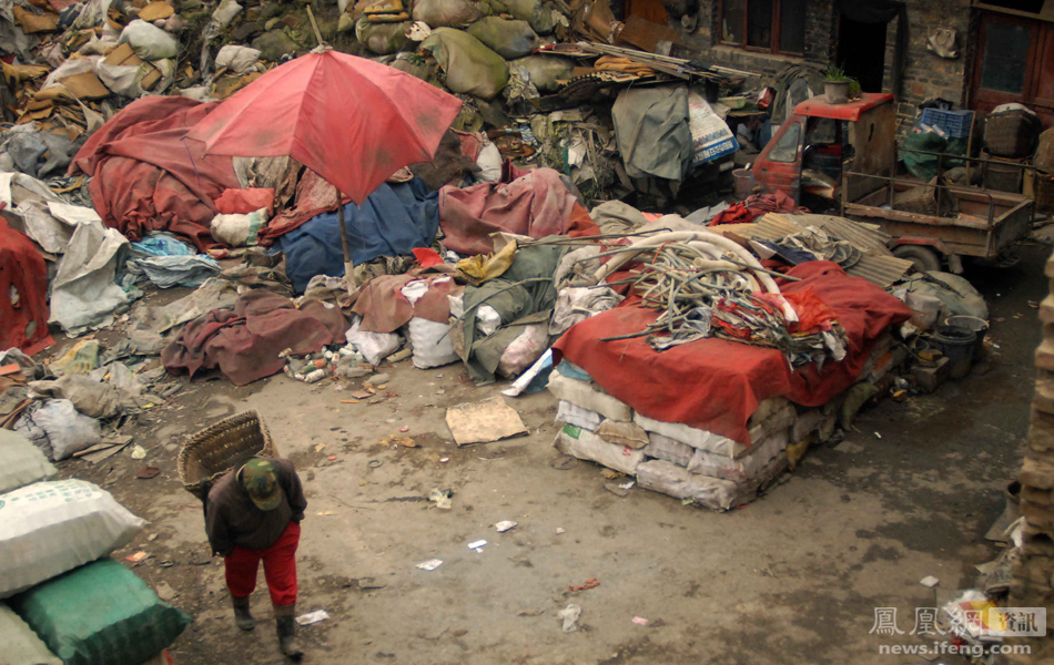贵阳市乌当垃圾场聚集了一群为生活而劳作于垃圾堆之上的拾荒者,他们来自贵州农村各地,每天与成山的垃圾堆打交道。图为12月25日,贵州省贵阳市,一名拾荒者回到堆满垃圾的家中。