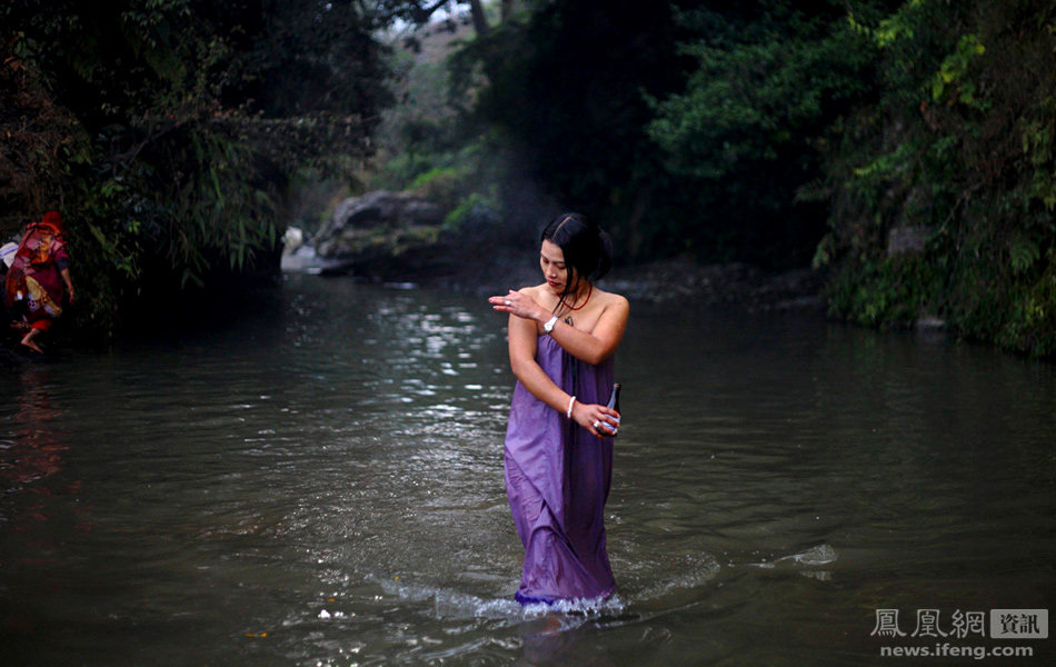 当地时间1月9日,Swasthani Brata Katha节首日,一名印度教徒在尼泊尔加德满都近郊的Saali 河沐浴后,准备登岸。当日,为期一个月的印度教节日——Swasthani Brata Katha正式拉开序幕,印度教徒在该节期间祈求更好、更幸福的生活。