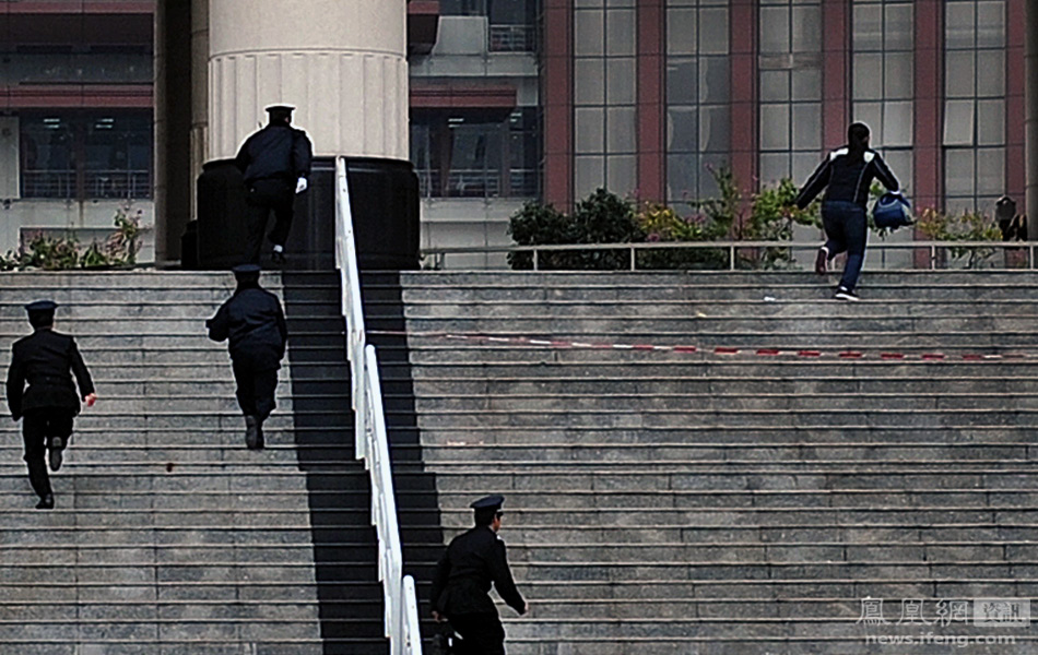 1月7日下午2点20分左右,2012年全国硕士研究生统一入学考试举行,在广州市暨南大学考点,四位保安追逐一位因迟到,硬闯考场的考生。最后这位考生还是被“押解”出了考场,错过了外国语科目的考试。