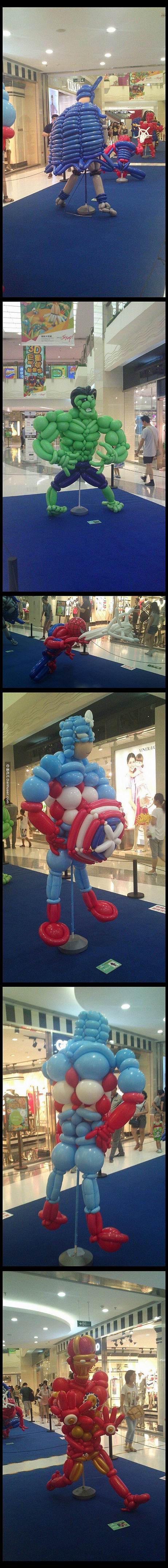 为庆祝《复仇者联盟2》上映,某商场制作了规模宏大的超级英雄气球人展,吸引了很多漫威迷前去参观。据悉,很多到场的观众们者们看到了之后都流下了激动的眼泪