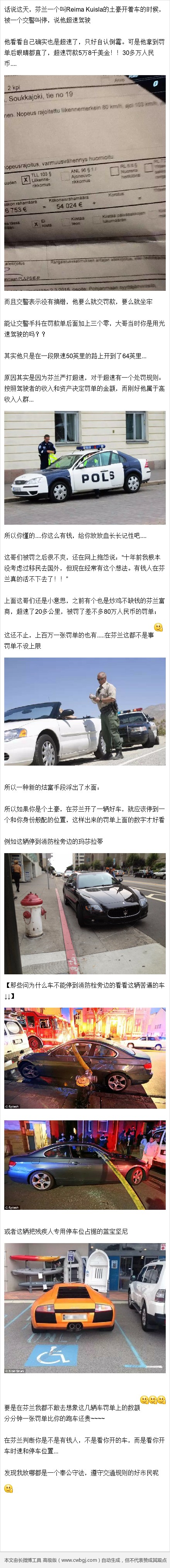 芬兰的有钱人都活不下去了.....开车超个速罚款比买跑车还贵...上百万不是事..... -
