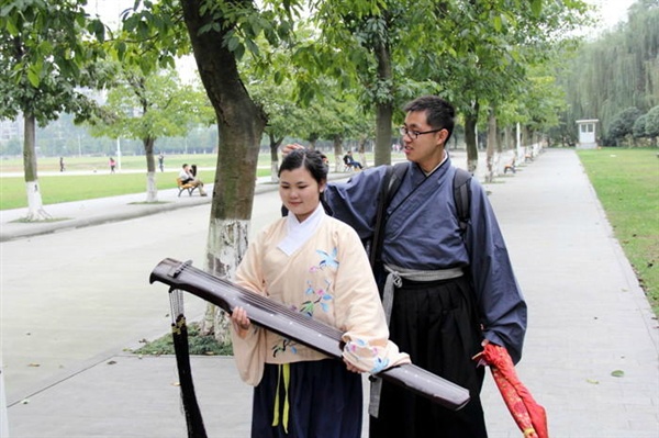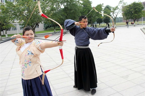四川大学大三学生胡雅洁和西华师范大学的胡默斋因对汉服的喜爱而结缘,因教习射艺而走到一起。每天穿着汉服上课,课余双双背着弓箭练习射箭,周末伴着清风在校园里抚琴品茗。