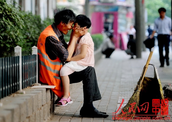 这正是《幸福》的摄人心魄之处。劳动者的幸福,草根者的爱意,这是一个社会的底气。每个人都要走一段长长的人生路,起点不同,际遇不同,对现实的希冀也不同。但看到这副图片,看到这一对普通人平凡的欢乐,我们心中涌动的,却都是相同的温情与希望。当他放下简陋的清洁工具,将孩子抱于膝上,欢乐如泉水一般自动流淌,劳动的疲惫在这一瞬化为烟云。幸福与亲情,成了对普通劳动者最美的慰藉,这是草根阶层的生活底气,是希望,是未来。
