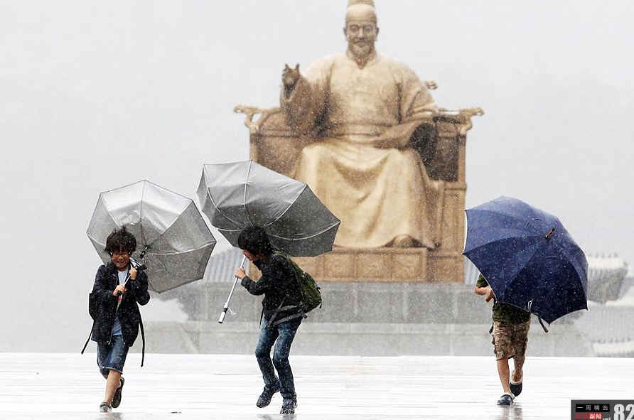 当地时间6月26日,韩国首尔,几名学生在风雨中艰难行走。受台风“米雷”影响,当地迎来强风及降雨天气,造成至少7人死亡或失踪,并导致一些地区电力中断,数十个国内航班停飞。朝中社报道,台风“米雷”26日晚些时候到达朝鲜,在一些地区带来10厘米以上的强降水。