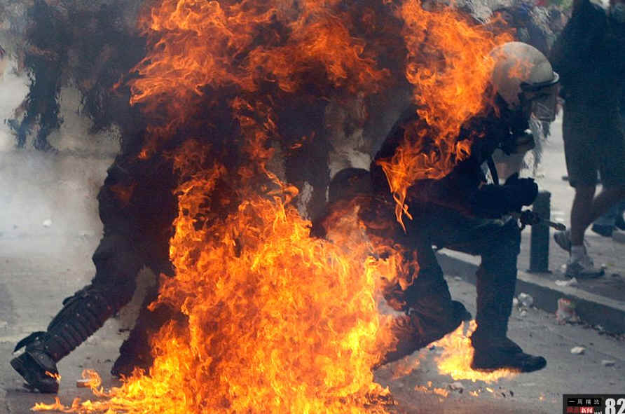 希腊雅典,几名防暴警察被抗议者投掷的燃烧瓶击中。当天下午,约500名示威者在市中心宪法广场附近向警察及公共建筑投掷石块和汽油弹,焚烧垃圾桶和其他示威者使用的帐篷。2009年底希腊遭遇严重债务危机,为获得欧盟和国际货币基金组织的财政支持,希腊政府不得不实施严厉的紧缩政策,削减工资、提高税收,引发民众强烈抗议。