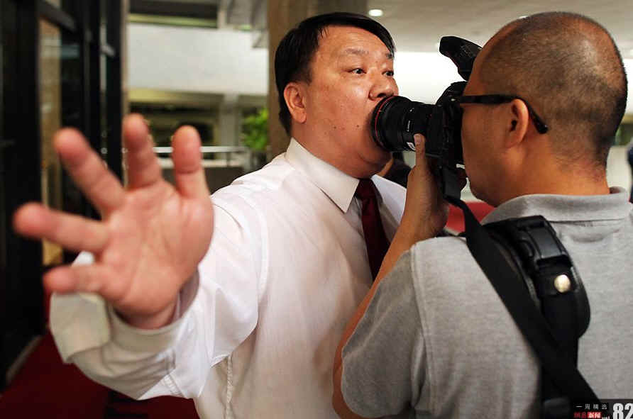 泰国驻香港领事馆,一名警卫用嘴挡住记者的镜头,阻止其拍摄抗议画面。此前,泰国逮捕一名涉嫌侮辱泰王的男子,引发各地民众抗议。泰国是君主立宪制国家,仍有冒犯君主罪条款,泰国媒体报道王室家庭时,大都自行审查。近年,涉及冒犯君主的案件呈上升趋势。