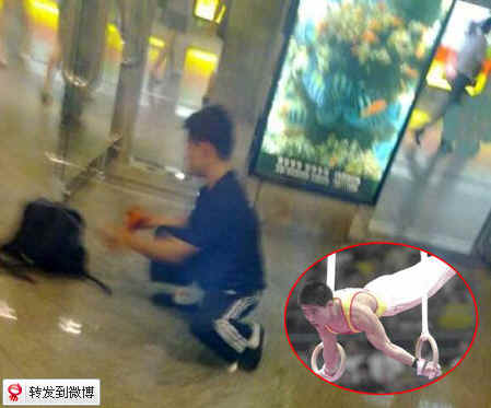 昨晚19:26分,网名为“浪风”的网友发上最新微博——“有多少人在王府井地铁口(东方新天地)看过这个体操前世界冠军?每天我还没到公司他就到了,我八点回家他还在。腿跟健断了,国家不管了,现在在乞讨,倒立,而后托马斯的结果是一天几十块......这是一张他被保安赶走收拾东西的图片。”随后这则文图具全的微博迅速引起大家的广泛关注,到今天中午已经一共被转发16952次。