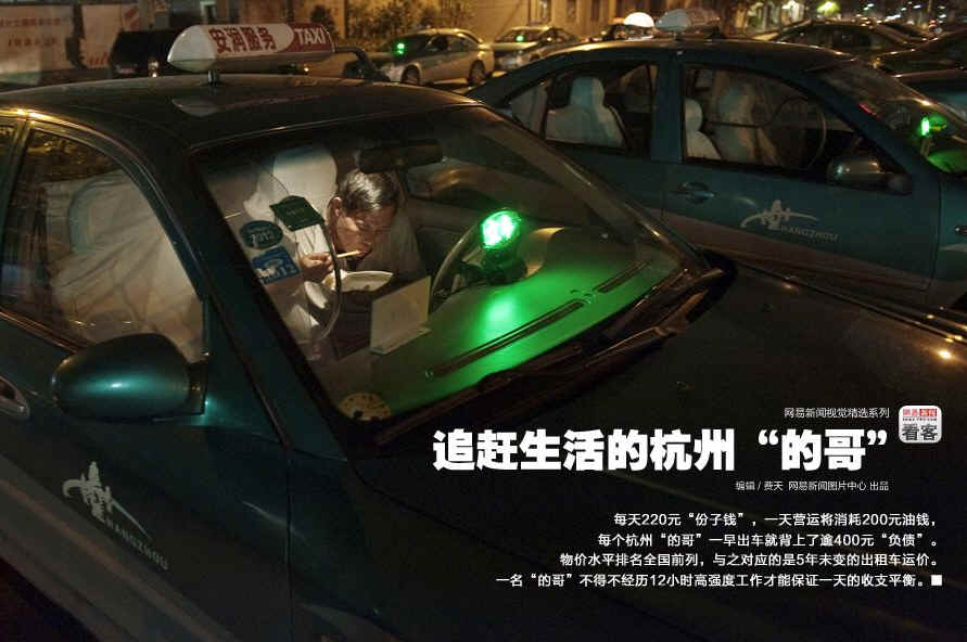 每天220元“份子钱”,一天营运将消耗的200元油钱,杭州“的哥”一早出车就背上了逾400元“负债”。物价水平排名全国前列,与之对应的是5年未变的出租车运价。一名“的哥”不得不经历12小时高强度工作才能保证一天的收支平衡。