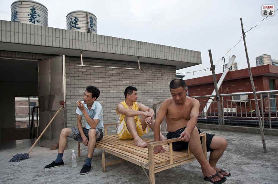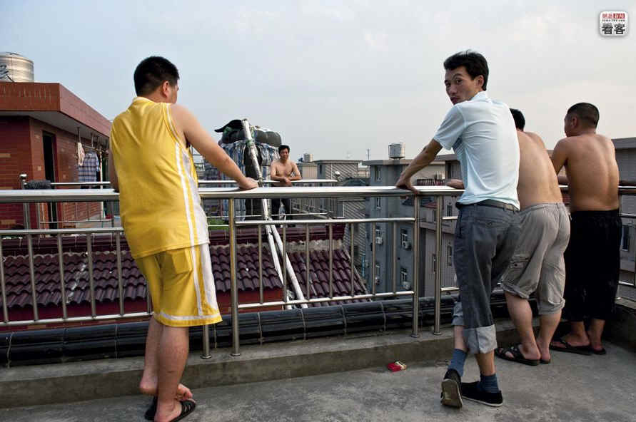甘长村的电价以工业用电计算,1元一度。虽然杭州夏季温度高达38摄氏度,很多司机只在睡觉的时候开一两个小时空调。下班后,楼顶是老乡们的聚集处。赤膊聊天抽烟,不到睡觉时间不回屋