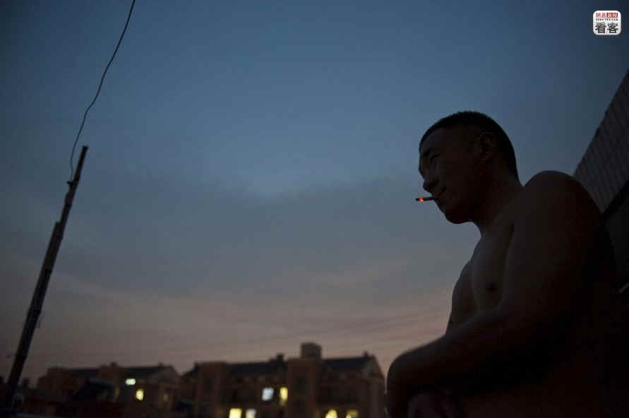 一名司机在位于甘长村的住所楼顶抽烟。2010年杭州城镇单位在岗职工月平均收入为4064元,远高于出租车司机三千左右的月收入,而出租车司机还要面对的是一天十二小时的工作时间和高强度的工作压力。
