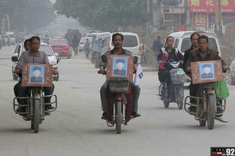 9月8日,在山西运城街头,三名男子各自骑着摩托车带着媳妇寻找走失的父亲。三兄弟的父亲患有老年痴呆症,于19天前离家走失。三兄弟骑车跑遍了方圆近100公里范围的市区和村庄,散发“寻人启事”近7000份。中秋节将至,三兄弟希望中秋节能与父亲团圆。