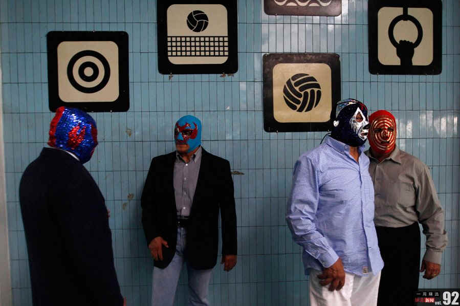 当地时间9月3日,墨西哥城,四位“传奇摔角手”Zodiaco、Dos Caras、 Mil Mascaras和Sicodelico出现在一个摔角面具展览会上。墨西哥摔角届有这样一个传统:所有年轻摔角手都会戴着面具比赛,在他们逐渐成熟后,大部分人就摘掉了面具;然而,也有一些摔角手将面具当作了自己一生的符号。
