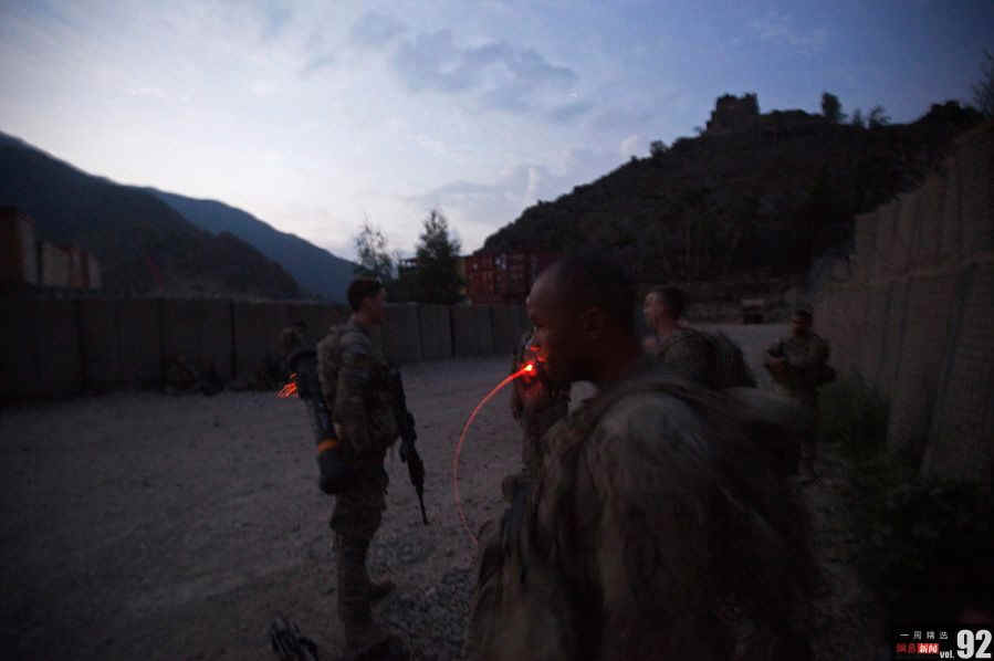 当地时间9月8日,阿富汗Kunar省,即将执行任务的美国士兵Daniel Rodriguez匆匆抽完手中最后一口烟。