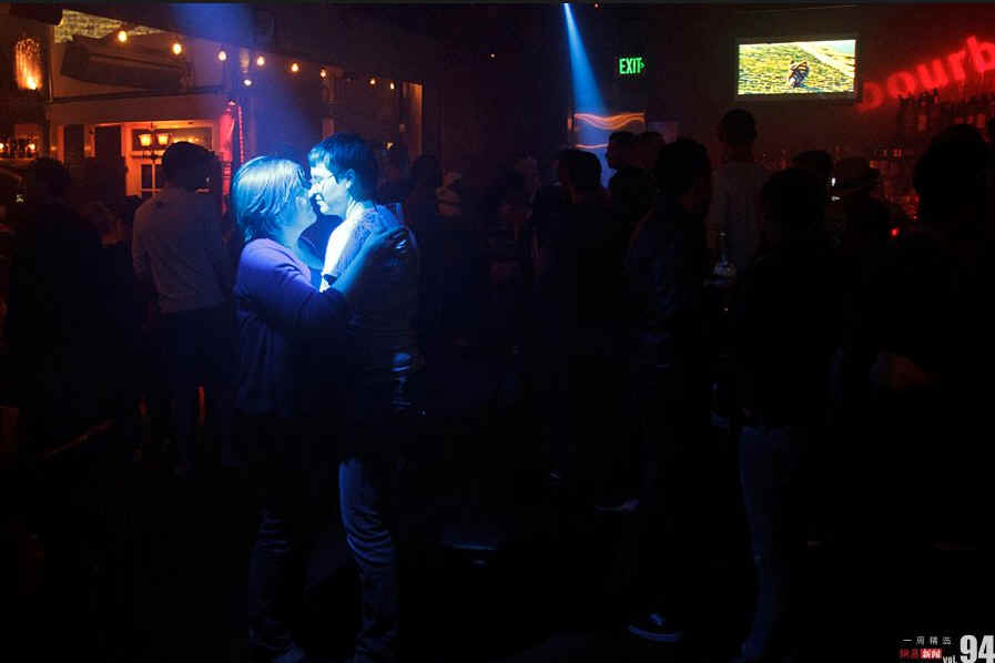 当地时间9月20日,美国圣迭戈,两名隶属于海军的女性军官在酒吧中共舞,以庆祝在20日零点被废除的同性恋参军禁令。美军自此将不对同性恋参军或军中同性恋现象设限。