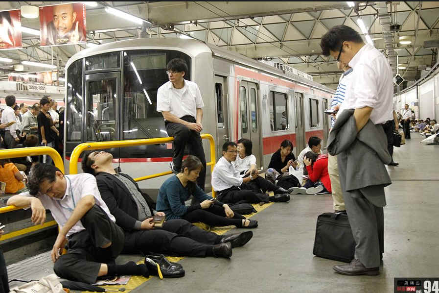 当地时间9月21日,今年第15号超强台风“洛克”从日本静冈县滨松市附近登陆,横穿日本列岛。受台风影响,日本东京地铁部分停运,图为在涩谷站等待列车恢复营运的乘客。