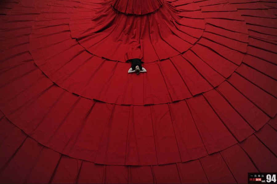 当地时间9月20日,英国伦敦,韩国艺术家Aamu Song 展示一件名为“REDDRESS”的艺术作品。