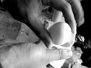 他说,上下联手,这样消费者在挑鸡蛋时不知是真是假,即使拿回家发现差别也没有办法。为了让鸡蛋更压秤,他们还可以把沙子注射到鸡蛋里,或者将变质鸡蛋“重新灌装”,这样就可以将“坏蛋变成好蛋”。