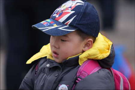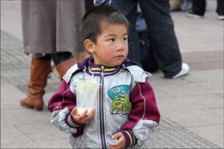 到达目的地后,已经十分匆忙,往往早餐只能将就下了,一杯豆浆也许就能打发了,这个孩子看来还有点饿。
