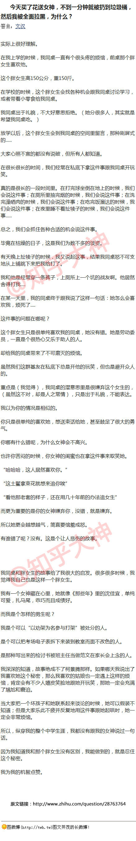 看了这个答主的分享的故事后,突然勾起了大神学生时期心酸的回忆,每个人的身边,都有一个故事里的胖女孩吧。