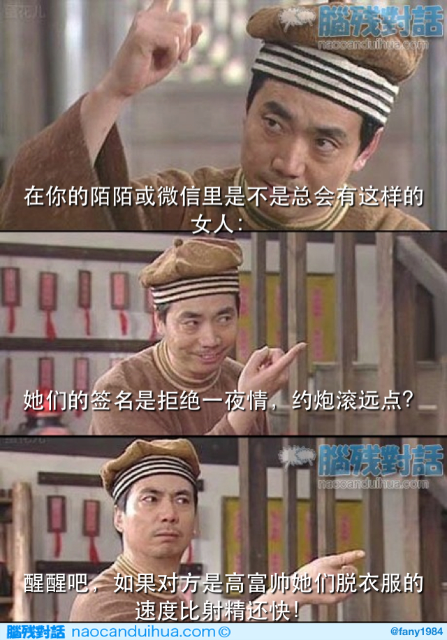 连他长什么样都不知道,你怎么就能死缠烂打,真想不通。大10岁的异族北方男,哼哼,可能是来自西伯利亚的狼,也可能是流着哈喇子的老头。但凡长得正常点的,网上忙着约炮,哪有空跟你瞎扯。他晾着你,一是知道自己跟你想象的落差很大,只想把你弄得成天湿漉漉的,享受控制的快感,而绝不现身,他是游戏中的王,现实中的渣;二是知道你是个无聊傻逼少女,不阻止你千里送逼的话,你会赖在他家门口打一夜地铺,完了还要他掏腰包买火车票送你回家。