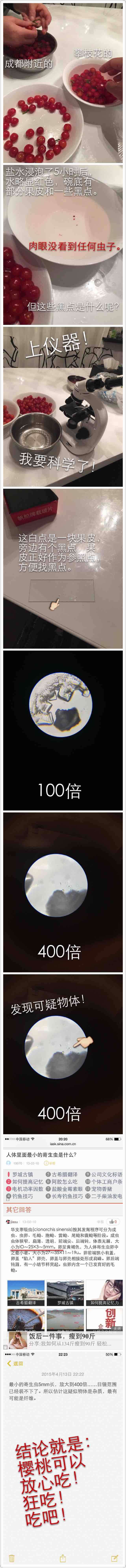 最近樱桃上市,盆友圈里又开始传樱桃泡了盐水就会有蛆爬出来的帖子。为了验证,亲自买了两个产地的樱桃,盐水泡了五个小时,就为了验证是不是真的!我为了你们这些吃货真是操碎了心啊!