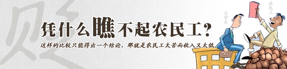 “个人认为农民工的工资应该比本科生高,其原因是:农民工一天工作最少14个小时,天亮上班(大约6点)天黑才下班(大约晚上9点),而且出的是牛马力,吃的是猪狗食(特别提醒:农民工吃饭是要钱的,比街上的饭差,一个成人每天吃饭用10-15元)。”对农民工非常熟悉的网友“渭河两岸柳成荫”认为农民工就应该比大学生挣的多。