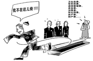无奈之下,张伟的妻子汤娟(化名)交纳了这笔费用,太平间开出一张盖有公章的《收费凭据》,其项目多达13个,包括抬尸180元,整容化妆100元,洗抹穿衣300元;寿衣880元,兜尸被2床80元;遗体冷藏34小时,每小时10元。此外,还有油灯、香烛、消毒费等费用。