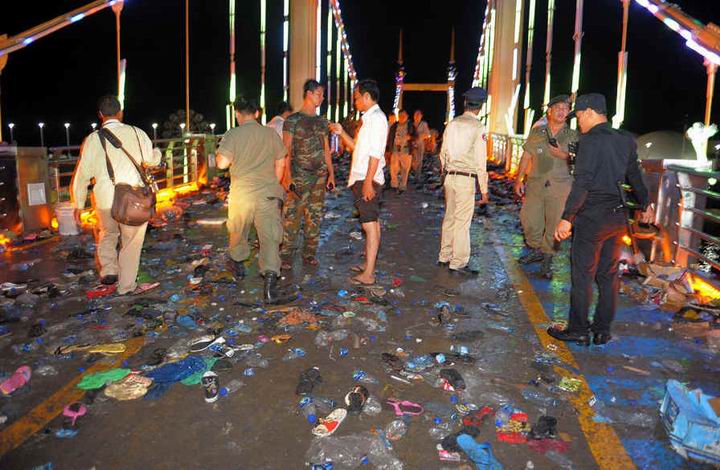 22日发生在金边钻石岛上的踩踏事件已造成数百人死亡,估计死亡数还会增加。大批民众涌向金边钻石岛参加庆祝活动。由于游人太多,金边市区连接钻石岛的一座桥产生晃动,引起恐慌导致拥挤踩踏。