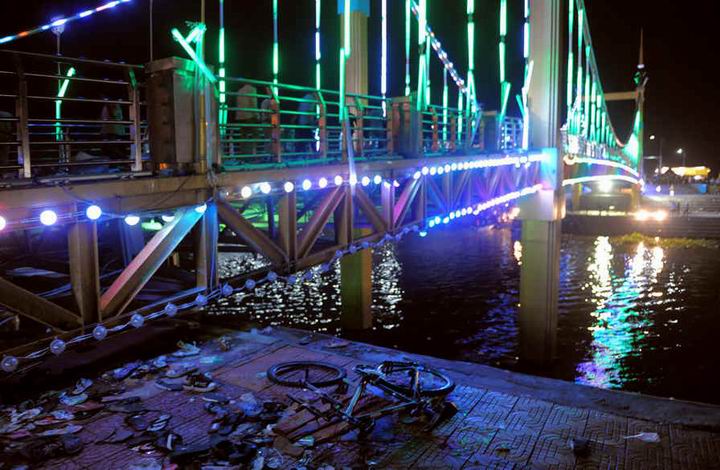 22日是柬埔寨为期三天传统送水节的最后一天,全国各地约有300万人涌向金边观看在王宫前的洞里萨河上举行的龙舟大赛以及在金边钻石岛等地的庆祝活动。图为11月23日,事发现场。