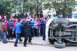 【画报】郑州城管暴打商贩 围观市民怒掀执法车