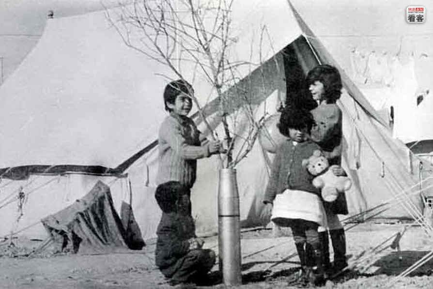 当地时间1974年,一座收容塞浦路斯岛希腊族人的难民营里,几名希腊族儿童用树枝插在空炮弹壳里,制作了一棵属于他们的圣诞树。1974年的土耳其入侵塞浦路斯事件,是希土两国至今仍然交恶的重要原因。