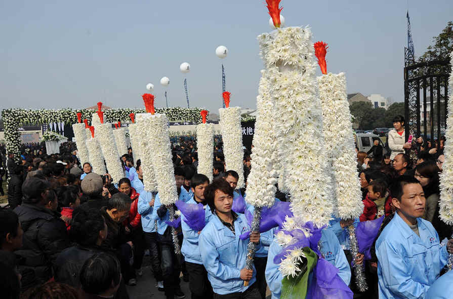 3月4日,浙江温岭当地企业家为母亲举办豪华葬礼。追悼会现场地毯铺地,花圈上千个,还停着大量豪车。吊唁的亲属和企业工人有几千人,加上围观群众足有上万人。据透露,葬礼的费用高达500万左右。