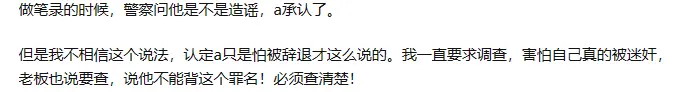 A完全懵逼了,连忙说“不不不,老板没有迷奸你”,所有都是他胡说的。