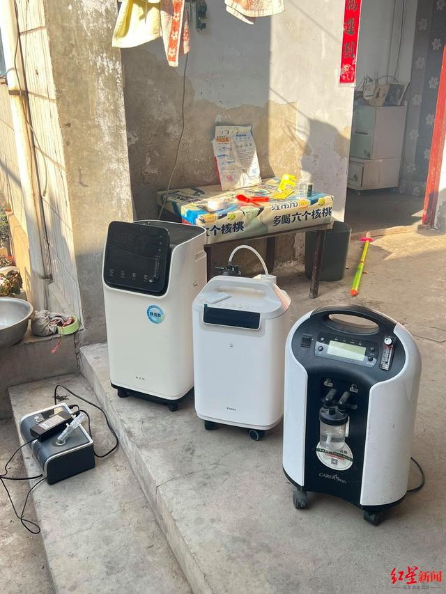 他总是担心制氧机出现问题,在家里准备了多台以防万一,甚至在他走之前的那个周五,家人才花了3000多元为他买来一台新的制氧机。他害怕停电,让孩子准备了一大罐氧气,还买来发电机,预备了能用上几天的汽油。