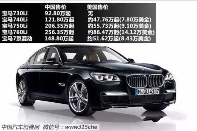 比如曾经一辆宝马 760Li 汽车卖 256 万,而在美国或者德国原产地,只要 86 万。