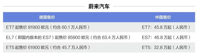 当时蔚来 EL7,在国内卖 46.8 万元,在德国卖 63.4 万元,?溢价 35.5%。