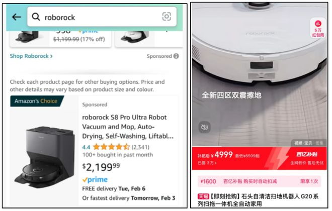 他们发现石头扫地机器人 S8 系列,在国内只要 4999 元,而在澳大利亚网购同一版本的需要 15974 元人民币,溢价 220%。