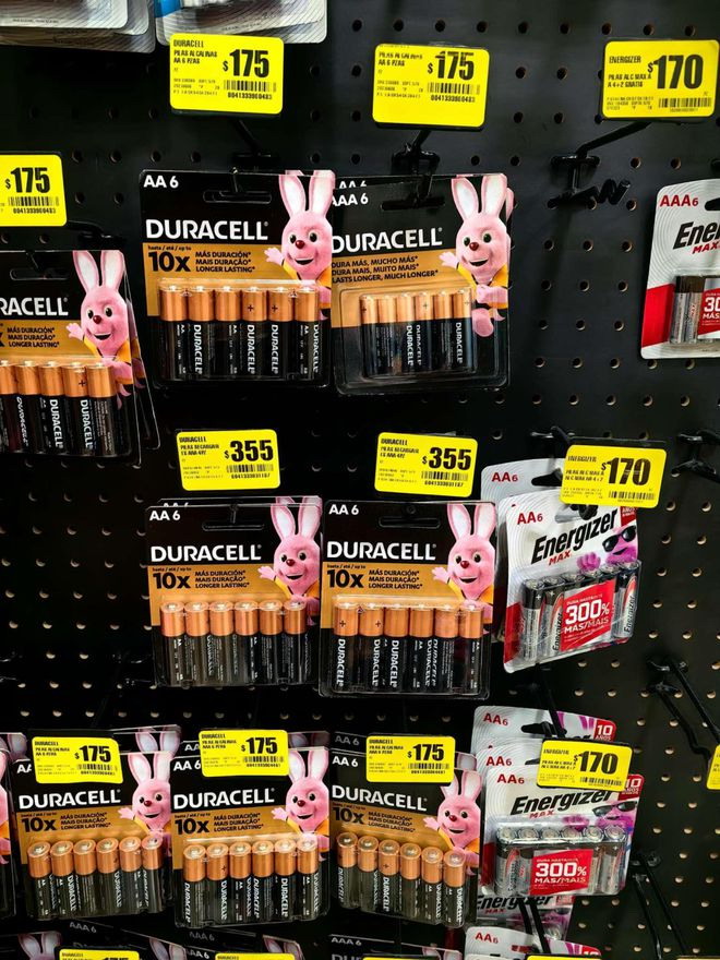墨西哥超市里,四节电池敢卖 140 元人民币(350 比索);